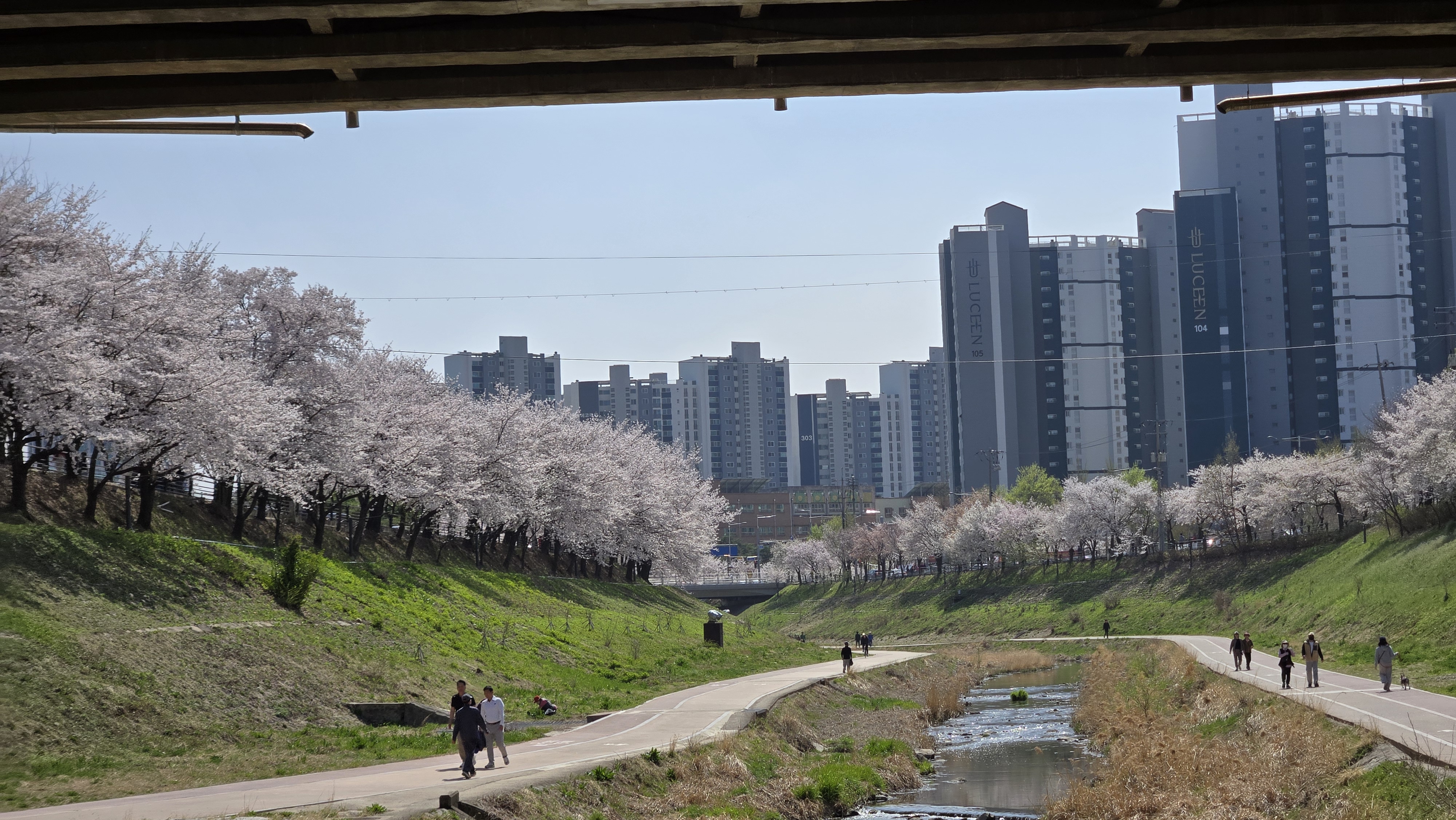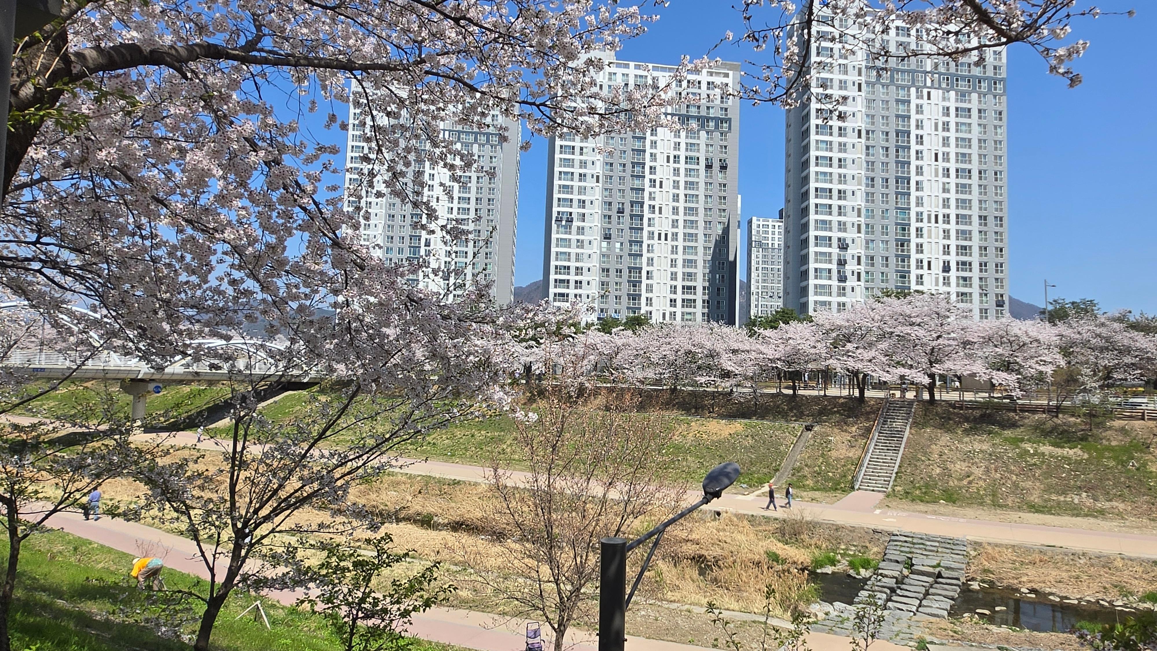 아파트 단지 내, 덕풍교 아래로 내려가면 작은 천 주위 로 산책길도 있어요