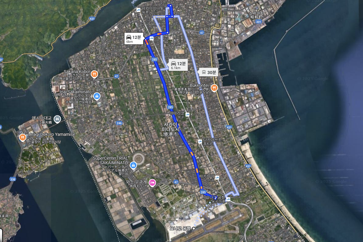 공항에서 하마루-푸 버스, JR사카이미나토선으로 사카이미나토역으로 가면 됩니다.