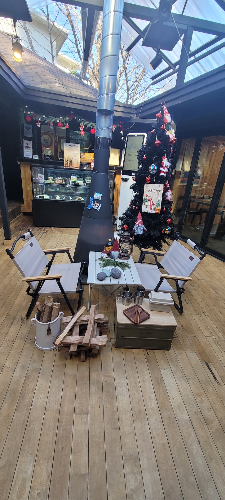 입구에 트리와 불멍 카페 분위기가 너무 이쁘요~~ 들어서자마자 감탄했다는~
