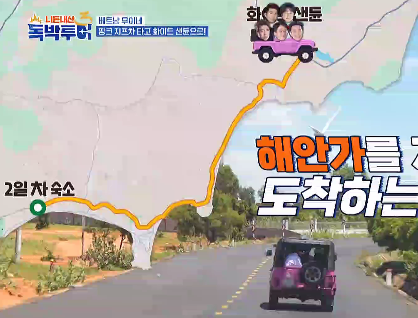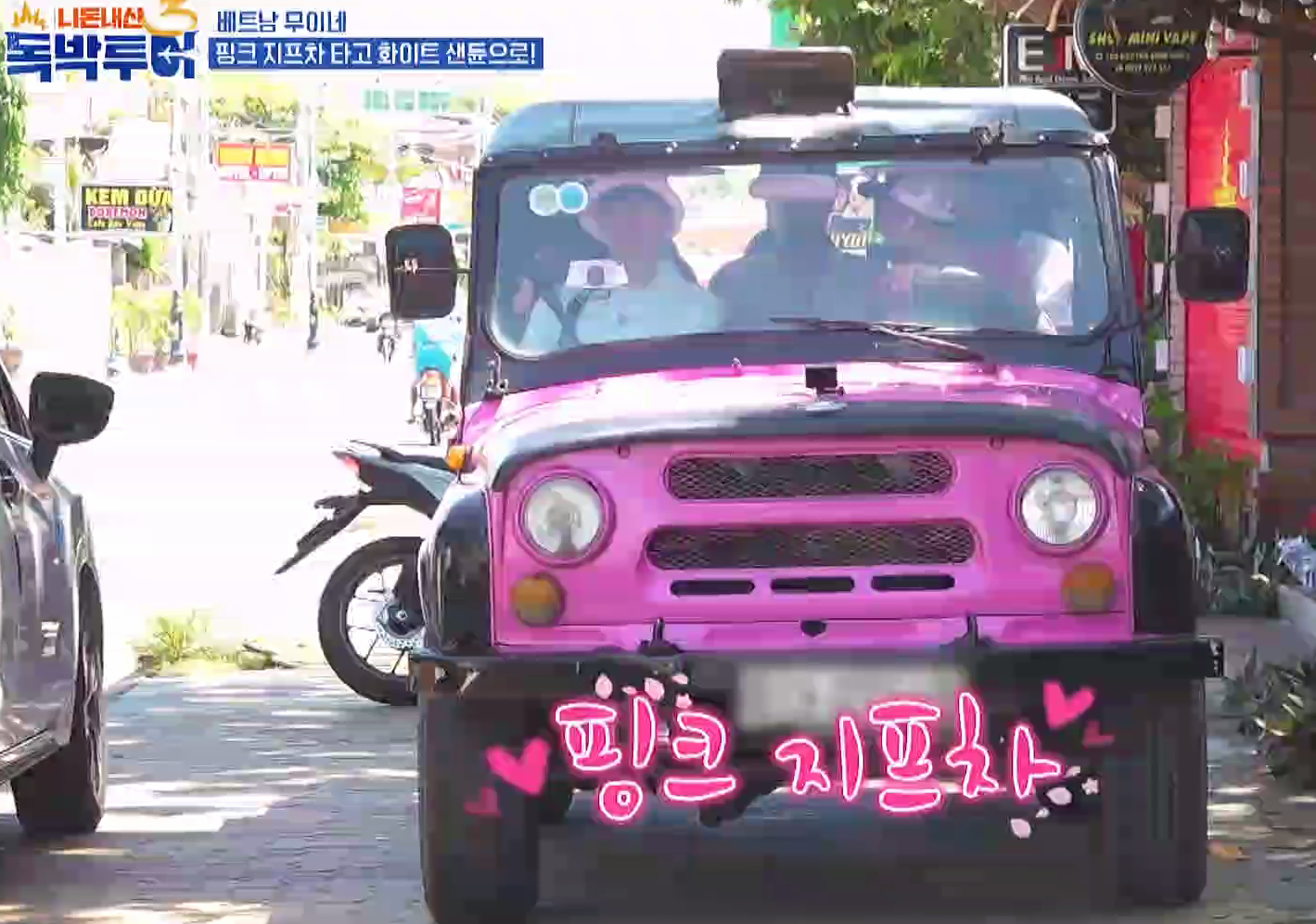식사 후 핑크 지프차를 타고 화이트 샌듄 이동