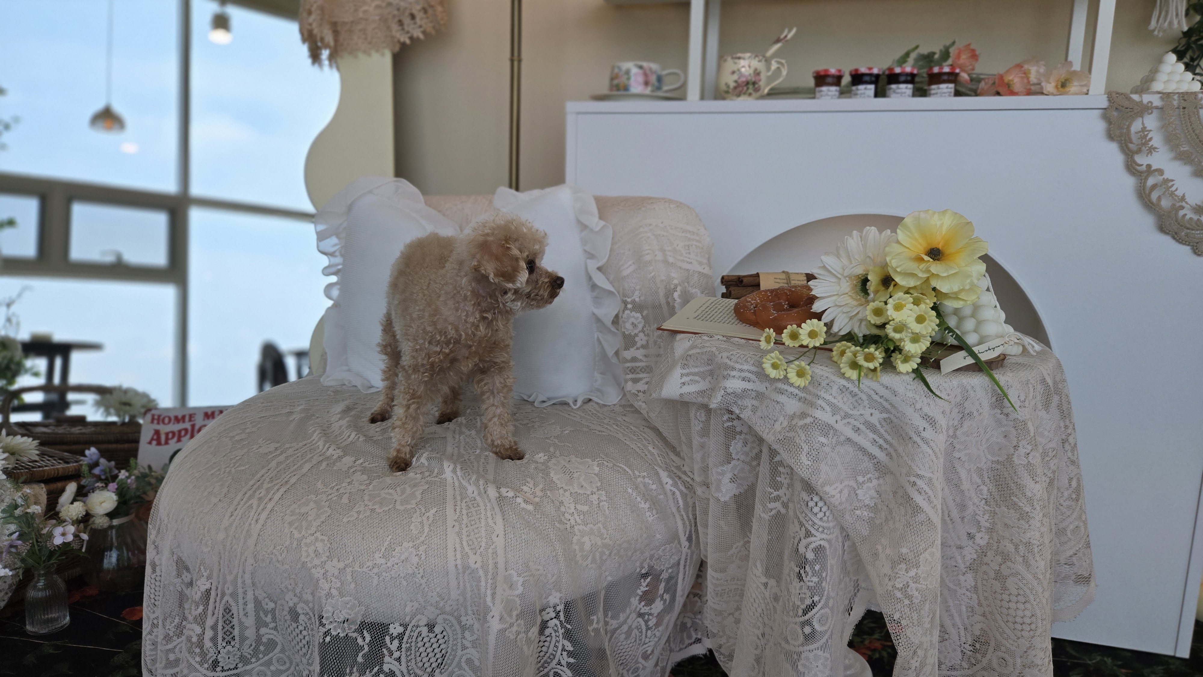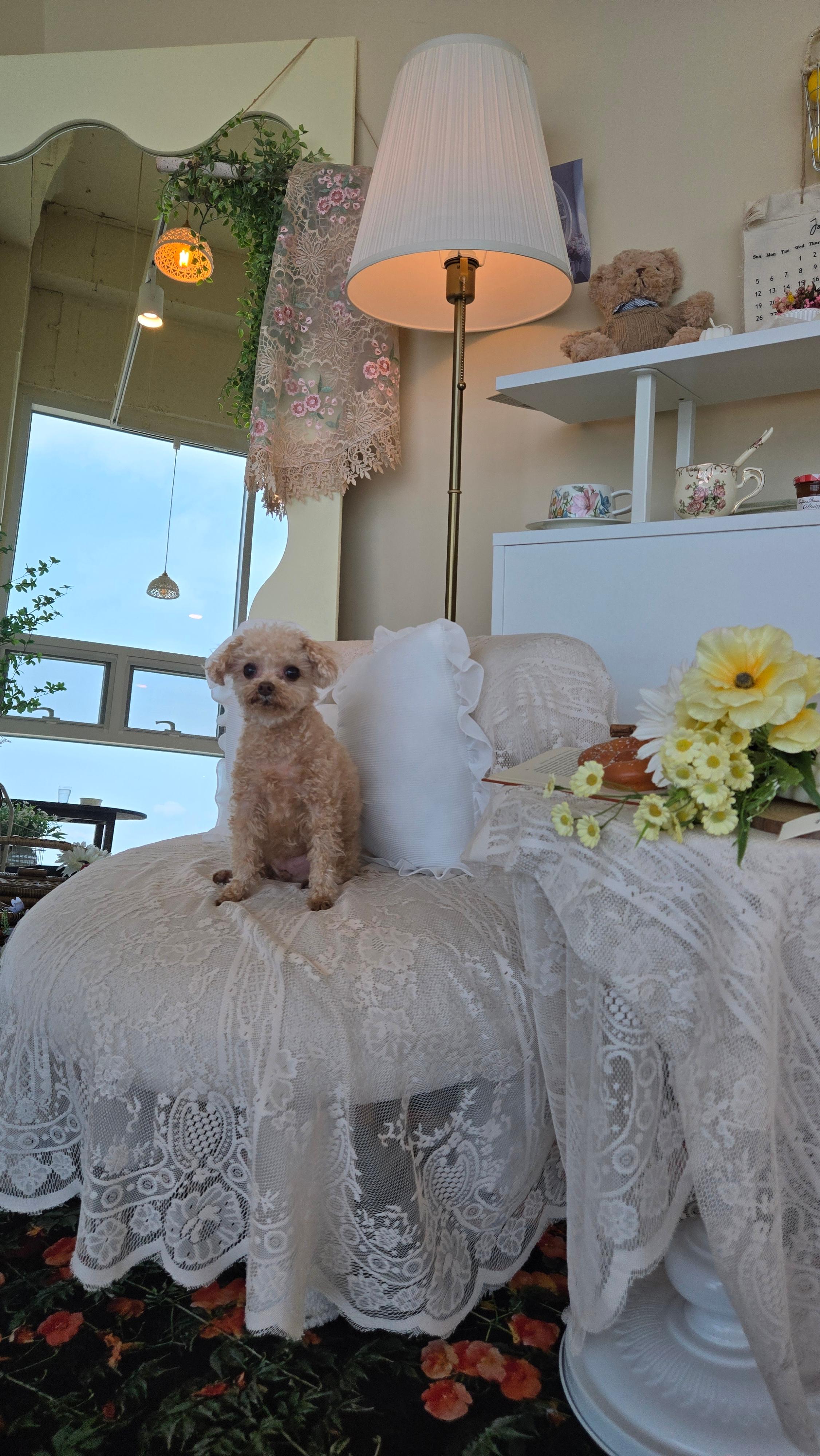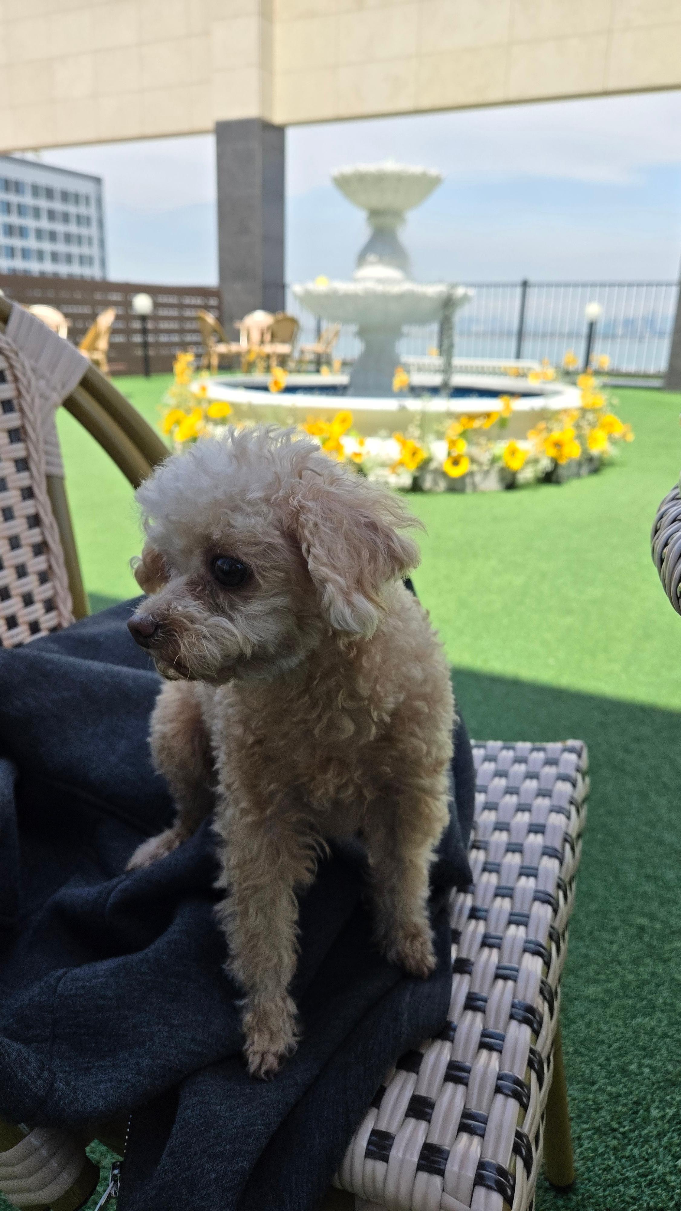 일단 캐리어, 유모차에 탑승하고, 안고 있으면 입장가능하고, 테라스에는 목줄과 기저귀 착용하면 산책 가능~
