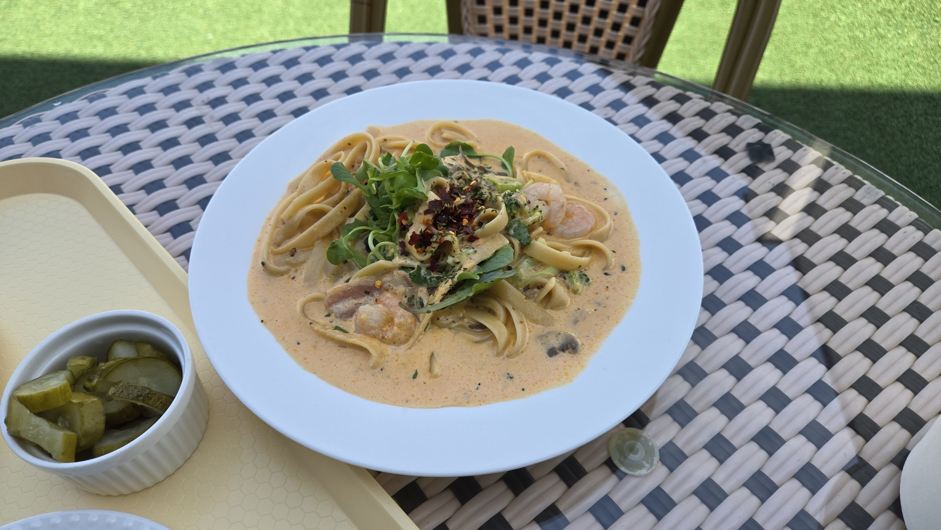 비주얼 보면 배가불러도 먹을수 밖에 없습니다. ~ 쉬림프 투움바 파스타와 흑임자 크레페.. 완전 존맛탱~