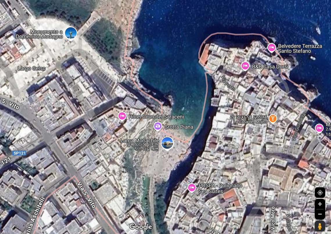 라마 모나칠레 해변 (Lama Monachile) : 멤버들이 수영하며 즐긴 아름다운 해변